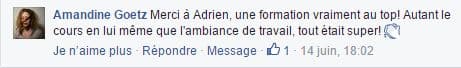 Ce cours a plu à nos étudiants (non pas qu’on en doutait :) ), comme le témoigne ce commentaire d’Amandine.